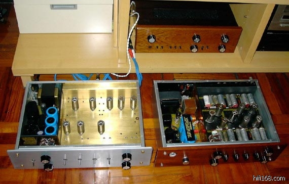 下面所列一为国内某名牌大厂的300B推輓合并式胆机,一为某网友DIY的马兰士线路胆前级。猜猜看,哪是厂机?哪是DIY?估计有些人会大跌眼镜: