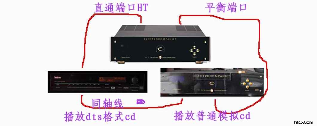 加上东芝42C3000C超高清电视1080P 怎样样把他们组成自己想要的一套系统呢。第一目标 视听以音效为主。这样只能在我的hifi系统上进行扩展兼容av.由于纯功放没有 音频解码器,必须增加 我选择了 莱思康 LEXICON DC2 .由它作为av的前级。 看图一。