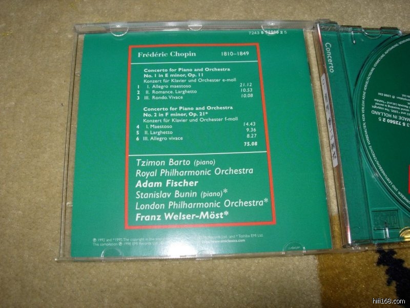 演奏者分别是巴图和布宁,其中布宁是1985年的肖邦大赛冠军。乐团分别是费舍尔指挥皇家爱乐,莫斯特指挥伦敦爱乐。虽然是廉价版,还是不错的。