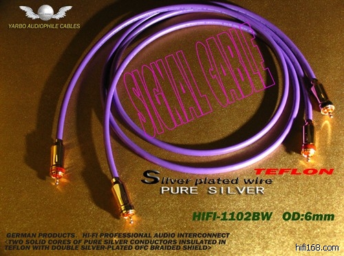2. 导体构成: 选用<德国99.9999%纯银线>纯银导体规格为: 0.30mm 1条置于导体中心十6条0.25mm镀银超纯铜线,精密绞合成圆型,二芯导体再分别被覆特富龙<TEFLON>介质。