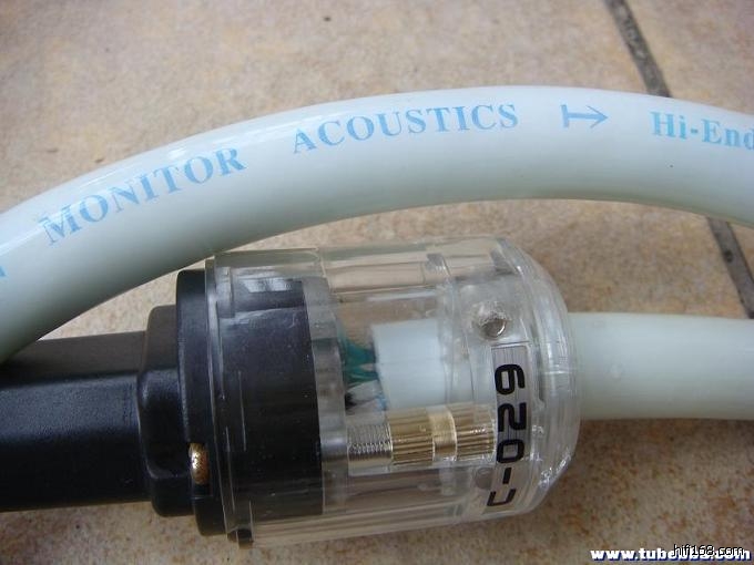 本线采用德国敏力(monitor acoustics hi-end high current audio )顶班电源线制造,铜银混合结构,设计使用七种不同材质和直径的导体。本线过流巨大,突出的特点是低频弹跳力非常强,超高频延伸颇佳,空气感不错,解析力高、速度快而不失韵味,一派严谨、缜密、准确、别致的德国风格,与胆机相配万无一失,好评如潮。其中铜芯四条:第1芯为一条直径1mm的粗铜裸线,第二芯为1条直径0.5mm的单独绝缘铜线,第三芯为3条为直径0.3mm的单独绝缘铜线,第四芯为1股直径0.1mm的单独绝缘铜线;银芯三条:两条为直径0.5mm的单独绝缘银线,另一条为直径0.1mm的单独绝缘银线。本线外表纯白,一派玉树临风的英俊外表!