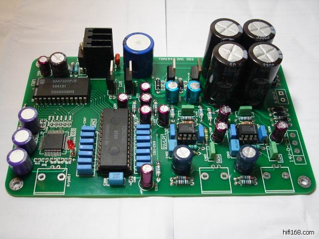 TDA1541 DAC OS3 成品板,采用TDA1315H同轴信号接收,SAA7220数字滤波,TDA1541数模转换,NE5532I/V,LPF输出,LM317为数字部分供电,接上电源变压器即可工作。尺寸 为:160MMX95MM,成品板:330元