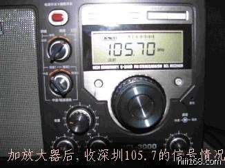 4)在相同的情况下,接上放大器,如(图4),同样的105.7,现在已经是满格信号,声音非常干净,背景噪音非常小,非常适合收听;
