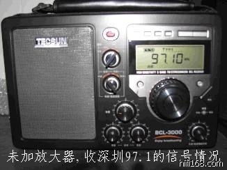 1)未加放大器的情况,如(图1),收深圳的97.1,现在只有3格信号,声音杂音非常多,基本是没法听的;