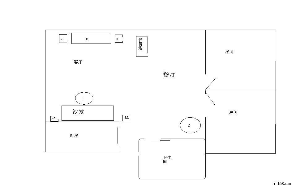 楼上的都是高手啊,我下午尝试放在L处,的确低频强劲了,而且比2区还要强劲,但是驻波明显,混混的,一塌糊涂,其他方位因为线不够长,暂时没试过,感觉还是放回原处和谐一点,就是少了一点量感。改天其他地方在试试。