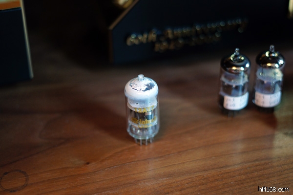 在换胆的过程中,一不小心,把麦景图原配的一只12AT7摔到木地板上了,大概30cm高掉下来,居然这么容易就烂了,国产胆啊!