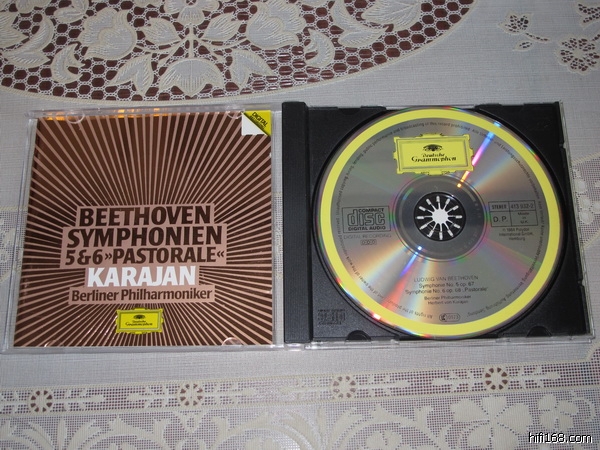 金卡,卡拉扬指挥贝多芬5“命运”、6“田园”交响曲,老英版内圈无字02,强光下边缘处极轻微浅擦,近乎完美如新。80元