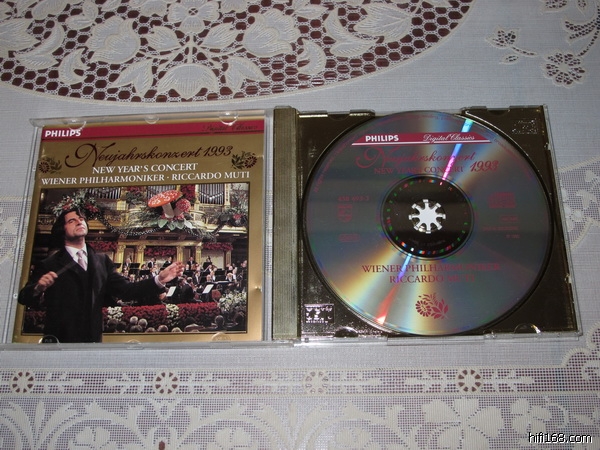 穆蒂指挥1993年维也纳新年音乐会,厚本小册末页有被小半圆磨损痕迹,真正德国半银01头版,无IFPI,近乎完美,原装八爪金碟托厚盒。150元