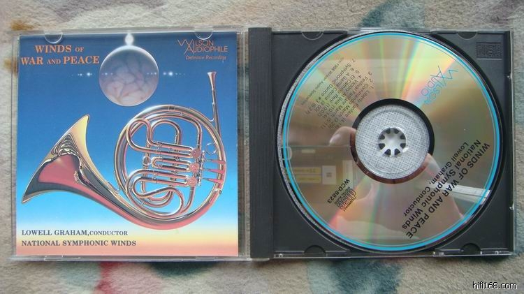 A28 Wilson威信 战争与和平 稀有发烧名盘“这一张CD是Center Stage的姊妹作,是由TAS赞助,Dace Wilson负责灌录的发烧作品。Wilson录出来的乐器比例有骄人成绩,鼓有大细,各种管乐器亦可听出提及大细。WIlson能设计出世上最昂贵的大喇叭和细喇叭,录音本领胜人一筹亦不足奇怪了。”---摘自CD圣经评语 JVC首版 950