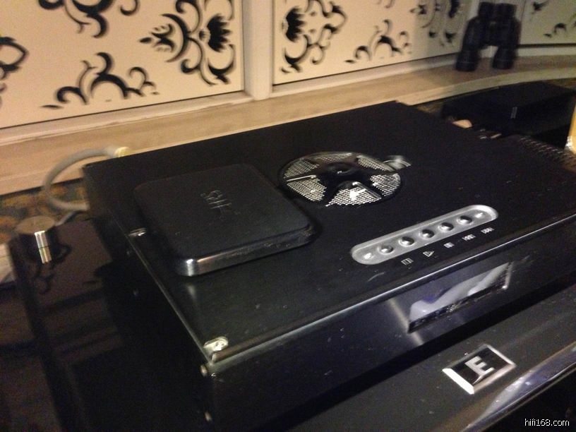 接下来就是那块上盖了,这块上盖是大有玄机的。其实雷射头的质量是都差不多的,看看每个厂给的数据就知道了,那为何那些贵到吓死人的承盘系统声音比较好? 其实最大的差异就在几何机械结构。原厂设计这块上盖,就肩负着这样的任务。他把原厂承盘的所有塑胶结构都去除了,以精密CNC切销出完美而紧密的结构,让整个震动降至最低,也让雷射机构完全因为超重量级的承座而稳定下来,更赞的是铝本身的电磁屏蔽作用让数位伺服机构动作更完美。这个设计让音质变化有如天壤之别,不过,这样做的成本真的很高啊!也让我们可以理解那些欧美厂商为何能把产品卖到这么贵,因为这真的只是为极少数人服务的加工方式。