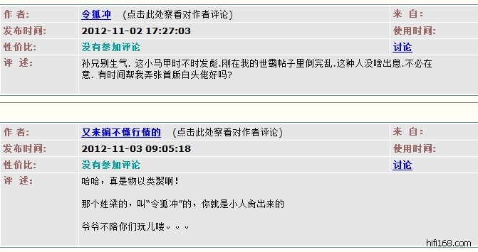 让大家看看 音响发烧站里的令狐冲 是十几年的老烧友了 口碑人际关系都首屈一指 多好的一个人 你能一天穿着一个小马甲去骂他 不就是因为你要买人家东西砍价 人家不给你便宜 你就怀恨在心了么 就为了这个一天去骂人家 你说你是不是一个龌龊小人?