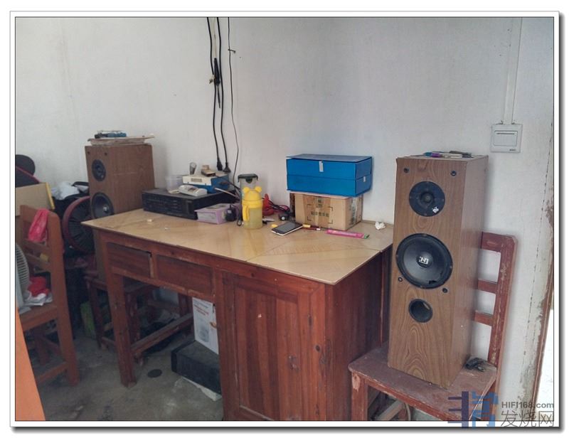 这对约三十年前自己从买板、锯木、粘木工乳胶装箱;到凿孔、装喇叭后来又贴了木纹纸、全手工制作的音箱,现在还保存着,留下纪念: