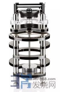 而同时,Statement还采用了非接触磁力驱动转盘系统,驱动马达以皮带驱动POM材质制造的飞轮副转盘,这组主动驱动组件安装在唱盘座的第二层,通过磁力扭矩装置,把驱动力带动上层的主转盘转动。由于磁力耦合的惰性作用,因此从根本上杜绝了驱动马达产生的微弱震动。