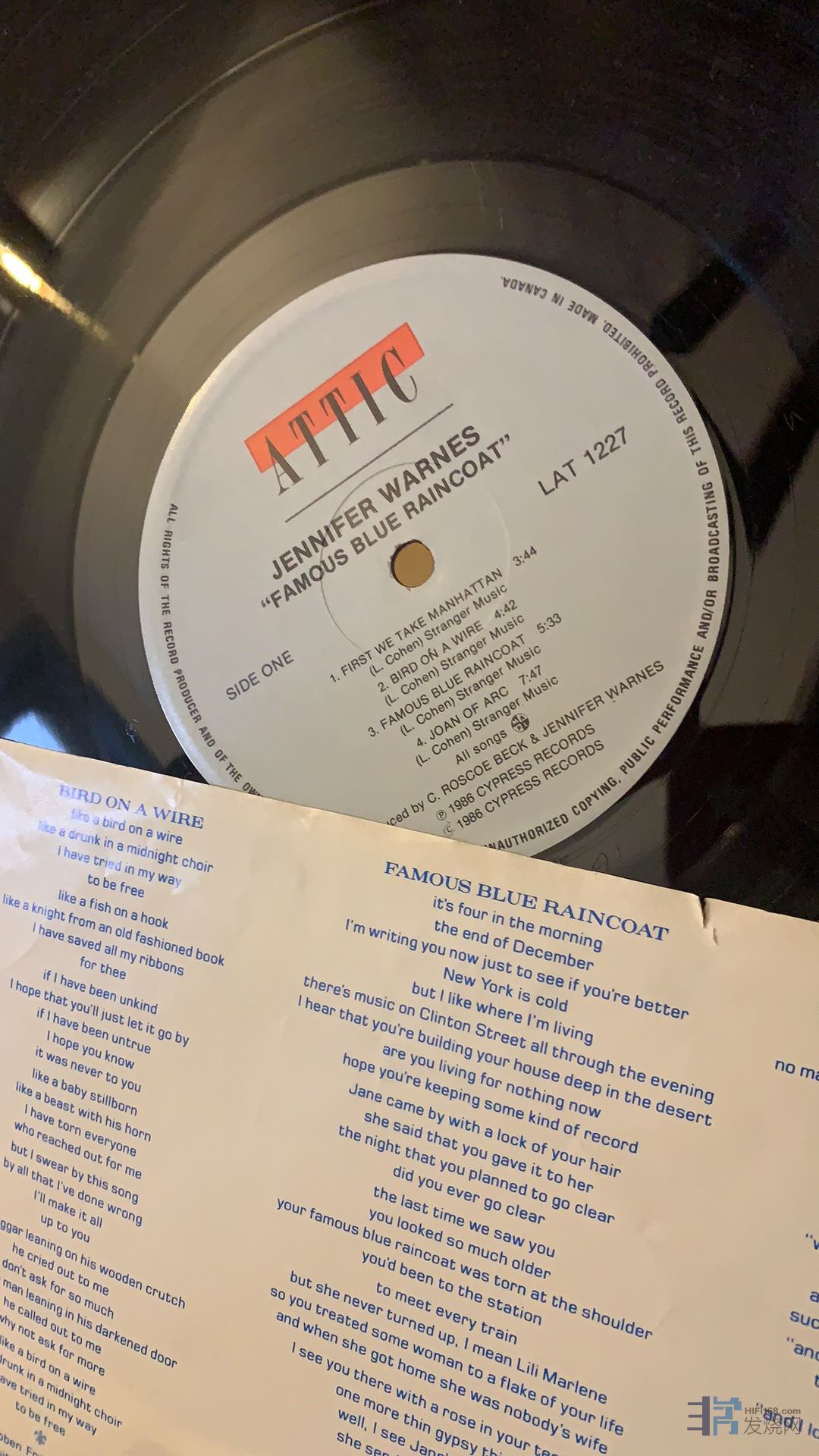 PS.在广州一些高档音响器材店里,如阁下到20万以上的器材去试听的话,店员大多数会给您演示这首歌曲,那就是Jennifer Warnes的《Famous Blue Raincoat》....不经意的播放,令到此碟,成为了昂贵器材的必备碟,也更是音响烧迷试机必听的曲子之一