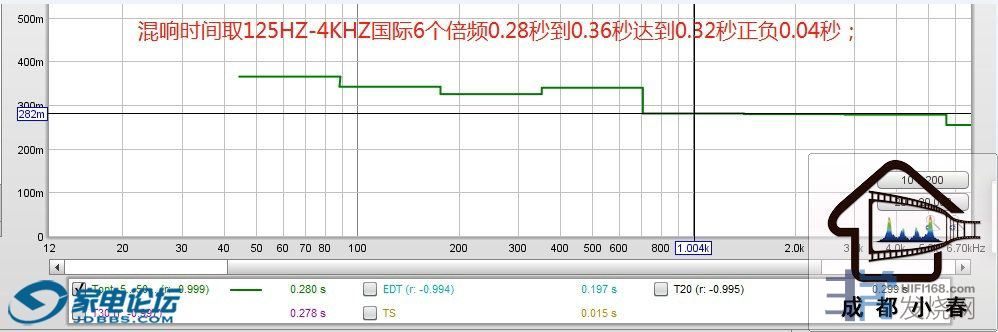 (高于坛友推崇的国外公司从250HZ到4KHZ的中高频5个倍频段混响时间标准,我们多一个125HZ低频段混响时间标准,贴合国家CMA认证机构检测的标准)
