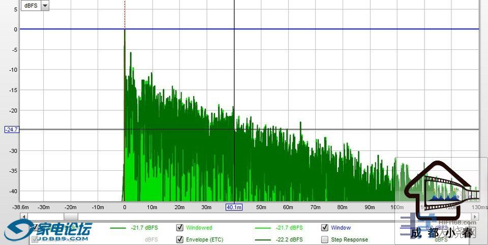 本空间实测:能量消散最慢的点34HZ经过300毫秒从92DB衰减到63DB;衰减量约29DB;