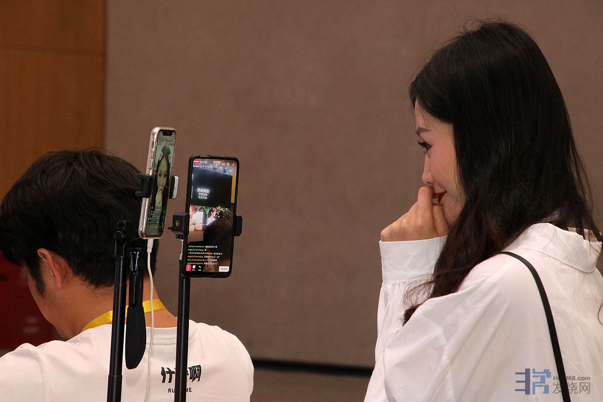 这是在酷狗耳机发布会上的一名网红在做直播,设备齐全,搞直播要两个手机?我真的落后了。