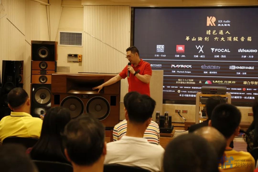 Jacky为现场观众介绍和讲解关于KR Audio的相关信息和与其搭配的不同顶级音箱呈现效果的区别,还与在场听众分享了个人经验与器材搭配方面的玩法心得。