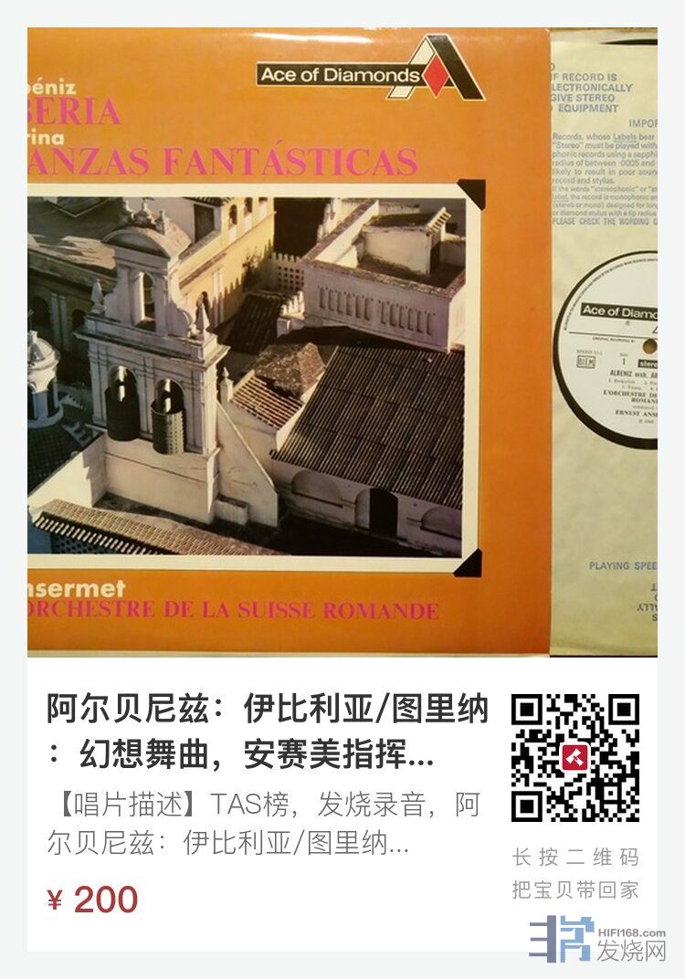【唱片描述】TAS榜,发烧录音,阿尔贝尼兹:伊比利亚/图里纳:幻想舞曲,安赛美指挥瑞士罗曼德管弦乐团,DECCA英国钻石标首版(同SXL 2243),NM
