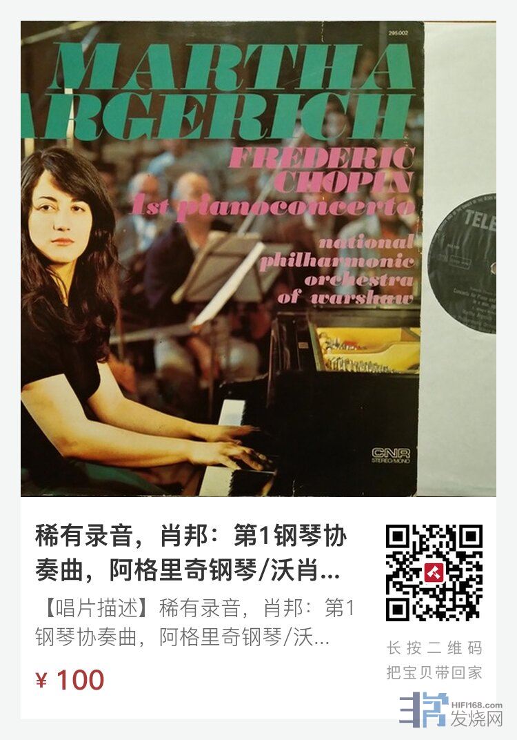 【唱片描述】稀有录音,肖邦:第1钢琴协奏曲,阿格里奇钢琴/沃肖国家交响乐团,1965年国际肖邦钢琴比赛现场录音,TELEFUNKEN德律风根荷兰首版(PHILIPS压片),EX++(一些使用擦痕,有轻微底噪,整体仍不错)