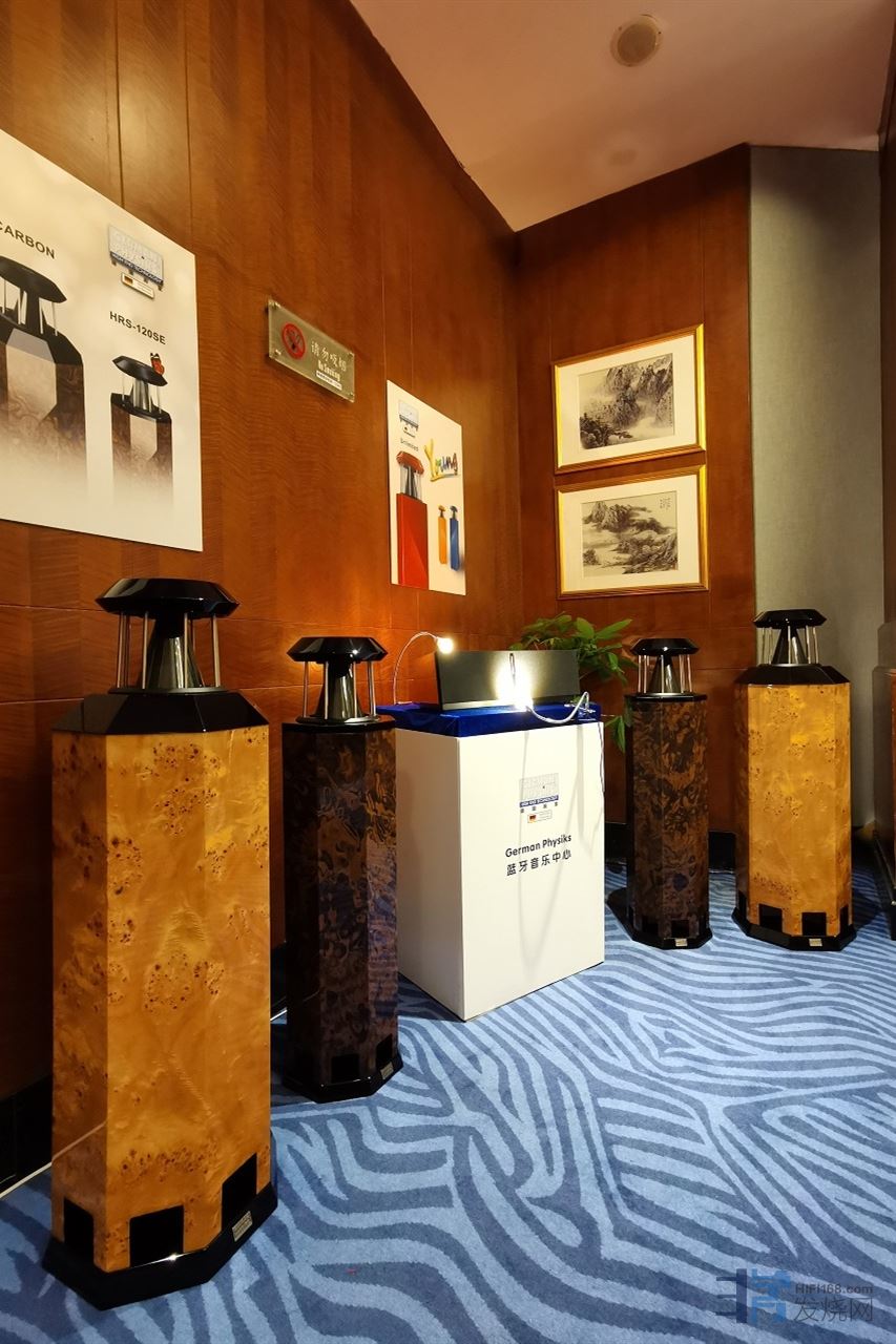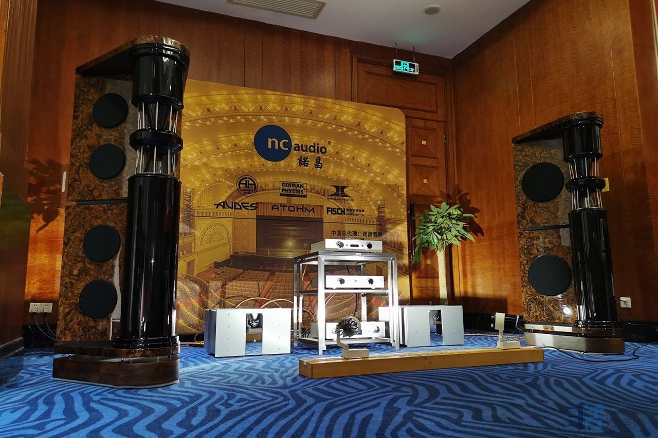本次展出位于东方宾馆二号楼一层金色大厅A厅休息室,开声器材为:德国殿堂German Physiks PQS-402落地式扬声器、德国Accustic Arts旗舰晶体管前级PREAMP III、德国Accustic Arts旗舰单声道后级MONO V、德国Accustic Arts旗舰转盘DRIVE II、德国Accustic Arts旗舰胆石混合解码TUBE DACII-MK3以及瑞士瑞宝Ensemble黄金系列和德国飞鱼FISCH Audiotechnik线材等。