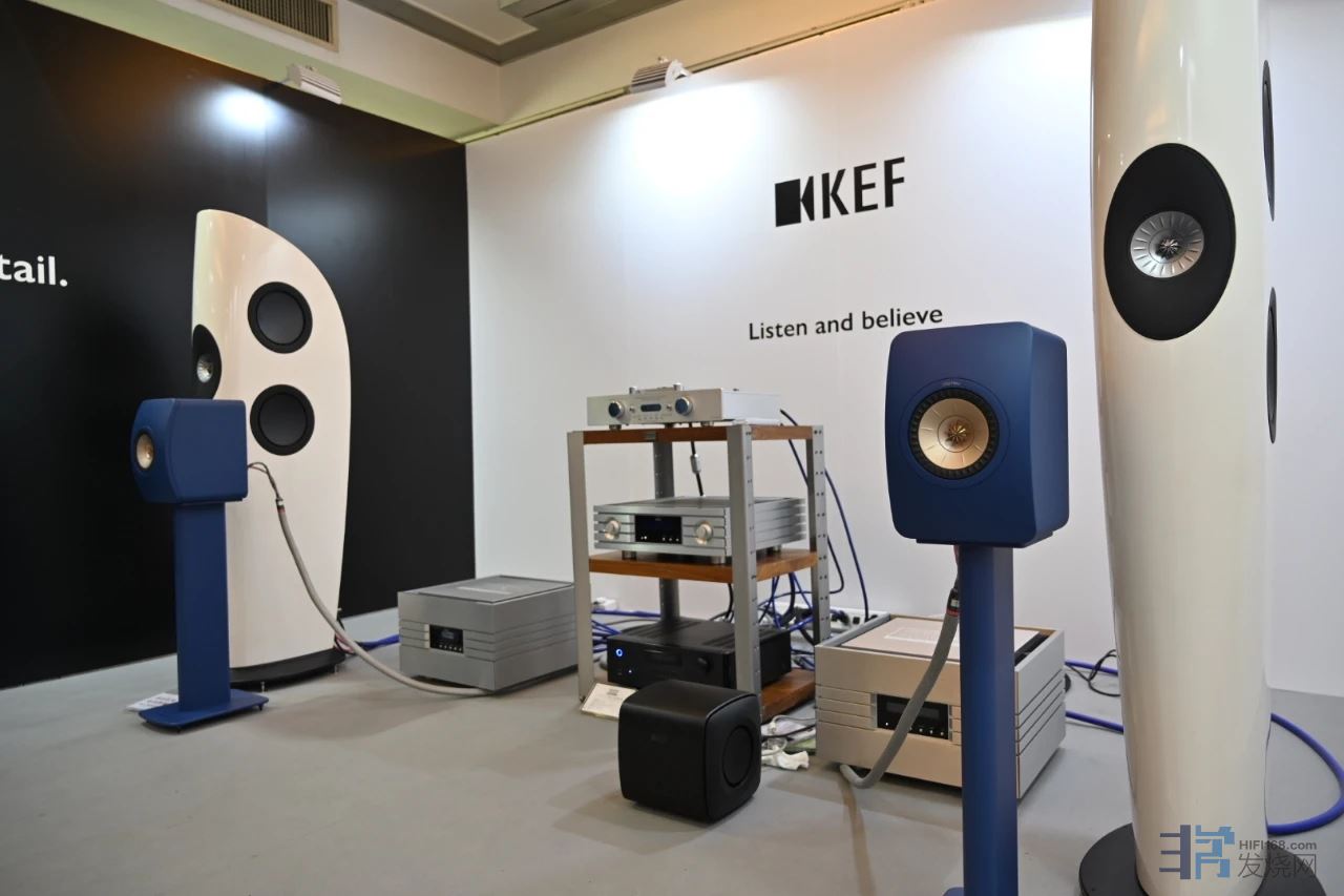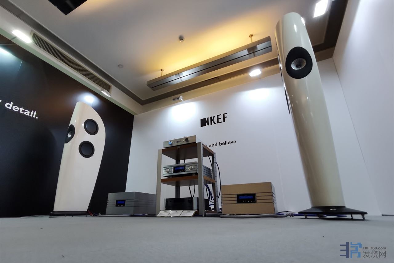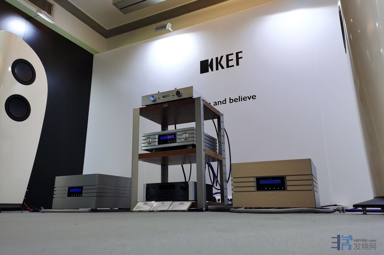 接下来,我们要进入我们的兄弟展房。德国殿堂German Physiks首次与KEF携手合作,展房中使用德国殿堂German Physiks Emperor Extreme系列功放驱动KEF刀锋BLADE,请欣赏: