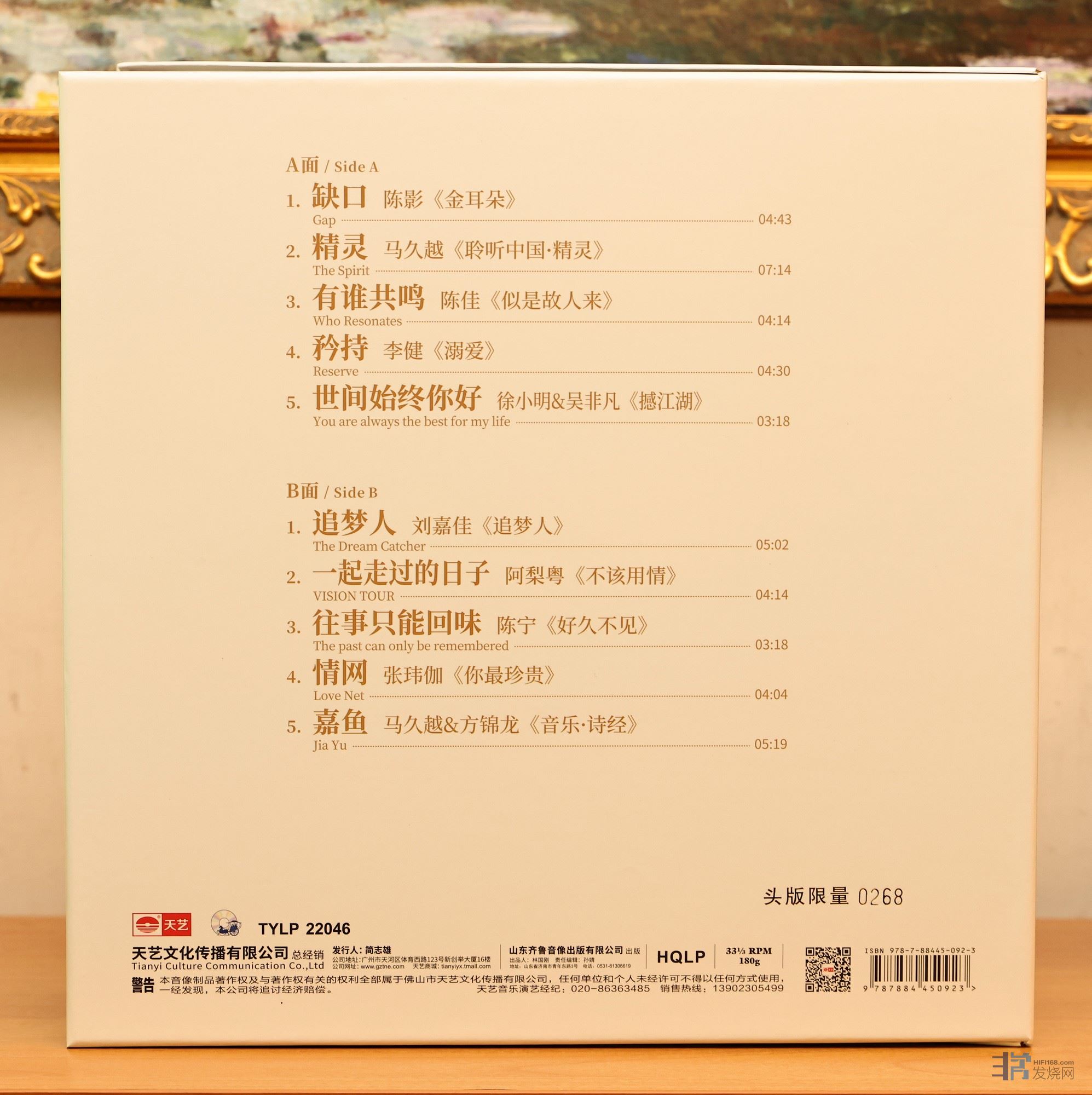 天艺唱片无疑是目前最进取的国内发烧唱片公司,天艺旗下歌手众多,和国内众多音乐人合作,唱片音乐类型丰富,琳琅满目,流行、民族、古典、跨界等兼备,款式之多在国内是首屈一指。下图是《天笈宝鉴·虎年精选》的HQCD II版本和黑胶版本合照。