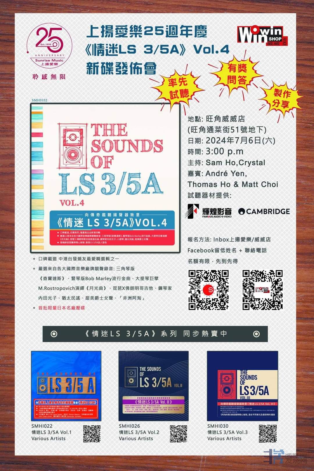聽得喜的靚聲!七月心登場,歡迎「逗陣(=共同、參與)」行: <情迷LS3/5A ,vol.4>CD# SMHI 032 https://sunrisemusic. ANDRE 发表于 2024/6/17 19:44:52 今天是<情迷3/5A,Vol .4>又一lucky day!!😊⑴街坊盛情支持!(攝自香港/九龍觀光勝地<廟街>旁的「寶靈街」食肆)(2)台灣资深發烧友&樂評人,2024/7/17 臉書專文推介