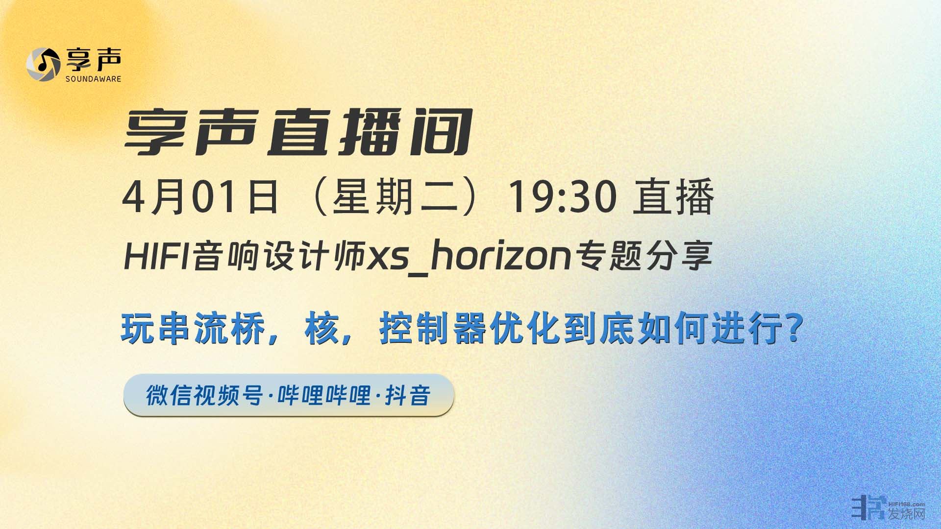 关键词:HIFI玩法、搭建、经验、答疑、探讨、享声相关!预约直播,开播有礼!享声直播间后续每周二晚7:30开播~