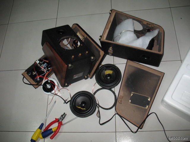 惠威最初出S8+C1的时候,就购入一套嗽叭单元及配件,用中密度板自制S8书架箱体。